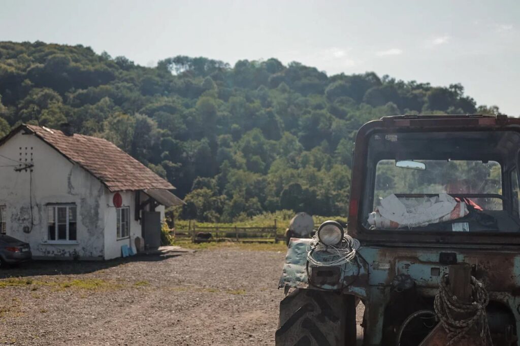 Как-то мы тормознули тут: пятиминутка на привал и фото с ржавым трактором. В этот раз решили зайти.
